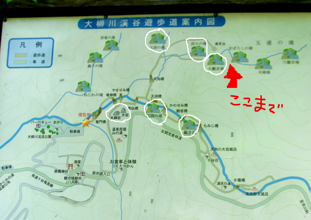 ここ大柳川渓谷は遊歩道になってて、大小30あまりの滝と、大小10本程の吊り橋が点在。
