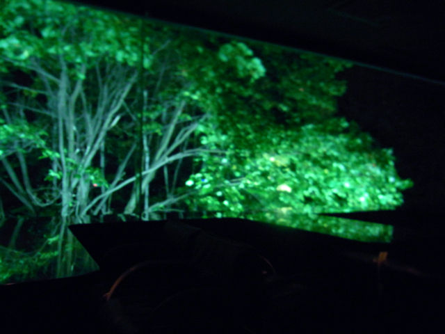 夜景と反対側には、スポットライトを浴びた大きい樹木が神秘的。